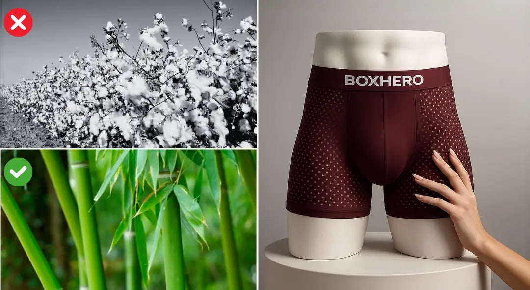 Most underwear uses cotton or synthetic polyester — materials that seem soft at first, but trap heat, absorb sweat, and rub the skin raw.